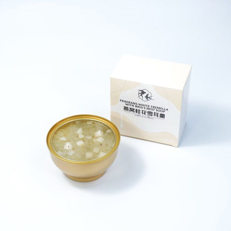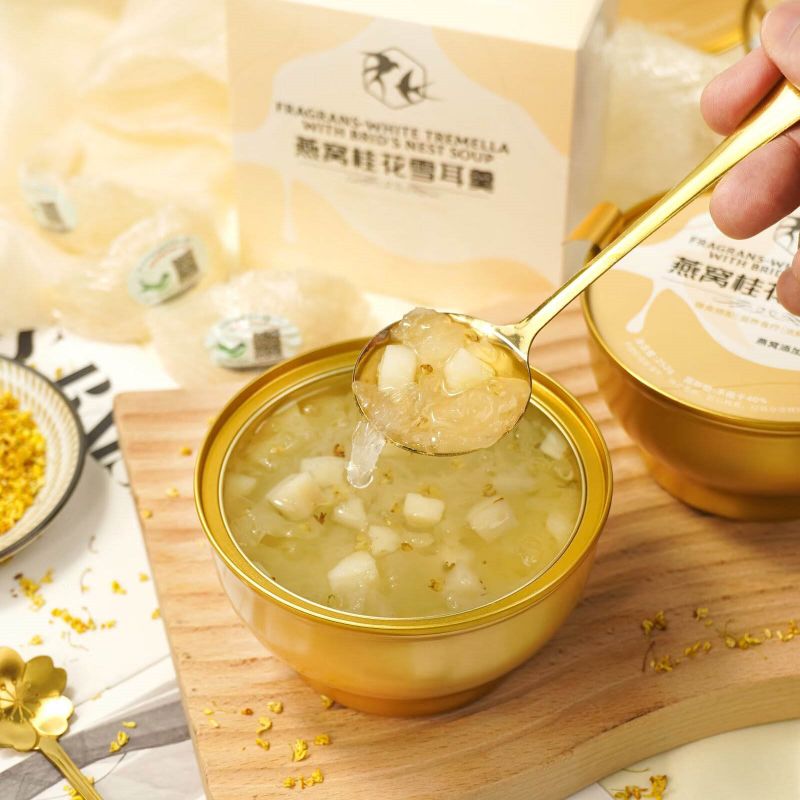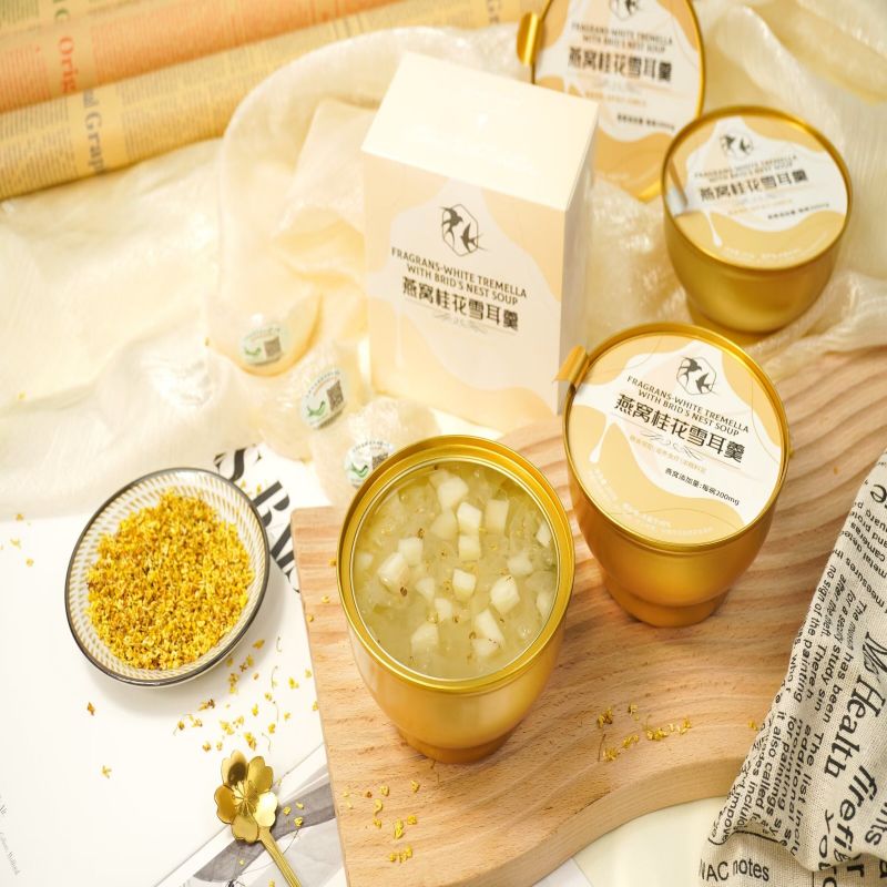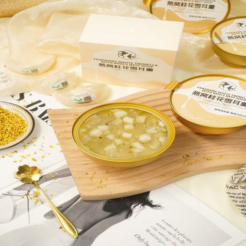 Улучшите свой оздоровительный отдых, насладившись Fragrans White Tremella с супом из птичьего гнезда. Будь то спа-день или домашний ужин, заботящийся о своем здоровье, сочетание белой тремеллы, птичьего гнезда и цветочного оттенка османтуса делает это блюдо идеальным для тех, кто ищет одновременно питание и изысканный вкус.