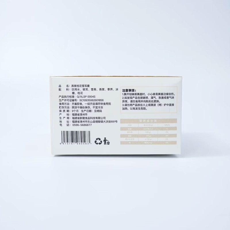 Ингредиент: Питьевая вода, белый гриб, снежная ласточка, птичье гнездо, сахарный песок, османтус.